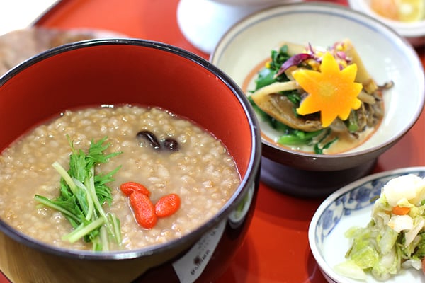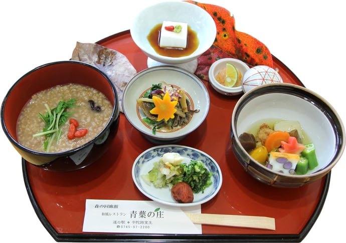 大和の地では日常的に茶粥を食す習慣がありました。この茶粥は地元の素材を使用した体に優しい逸品。あっさりとスッキリ食べられるヘルシーさが人気です。